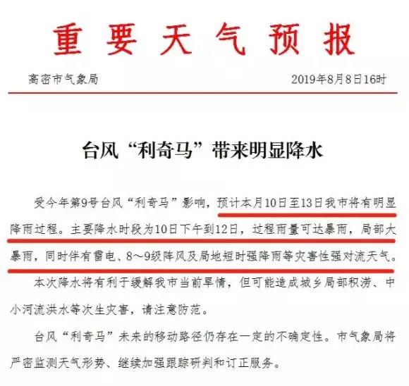 8月9日宣城市氣象局發布重大氣象信息專報稱,第9號臺風“利奇馬”(超強臺風)今天早晨8時位于距離浙江省溫嶺市東南方向約290公里海面上,中心附近最大風力17級(58米/秒),中心最低氣壓920百帕。9日下午至11日受“利奇馬”外圍 云系影響,宣城市有一次強降雨和大風天氣過程。需防范強降雨可能引發的城鄉積澇和山洪地質災害,防御強風給安全生產、交通、旅游、電力等帶來的不利影響,需注意高空及水面作用安全。