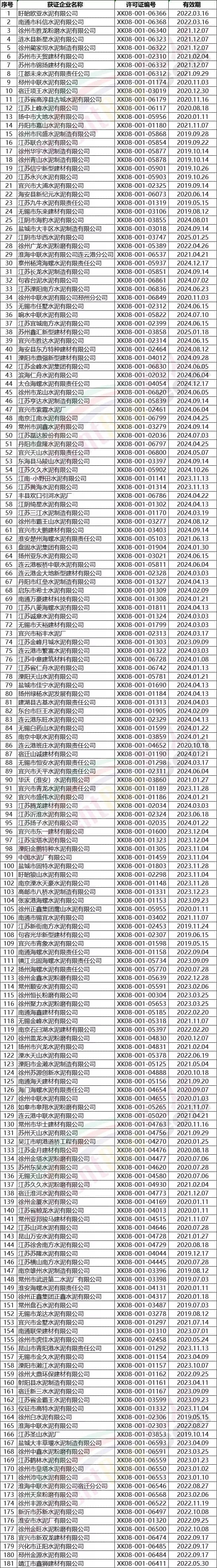 江蘇省部分水泥企業名單
