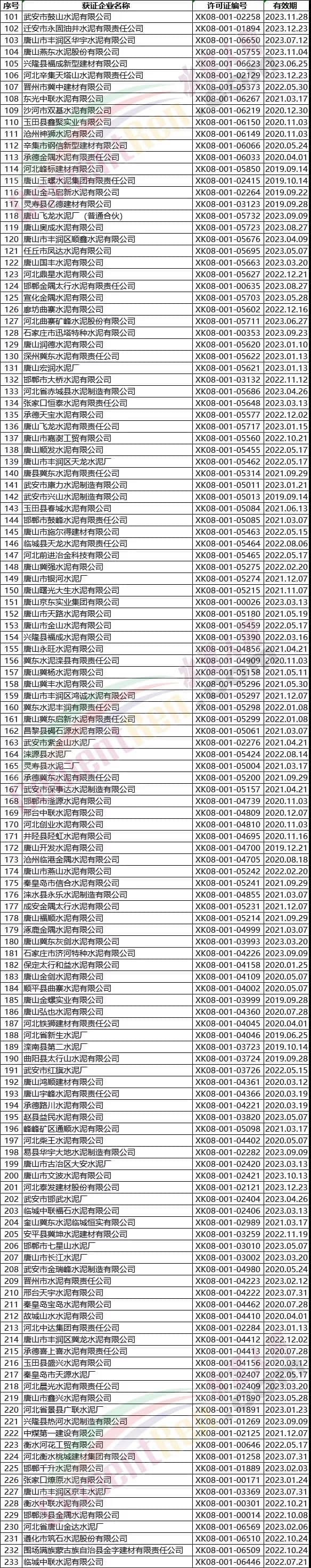 河北省水泥企業名單