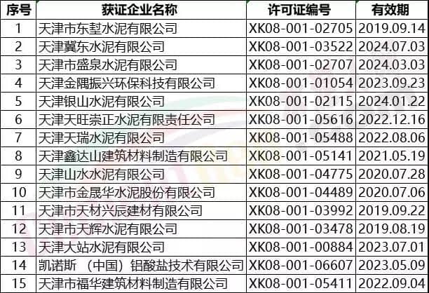 天津市部分水泥企業名單