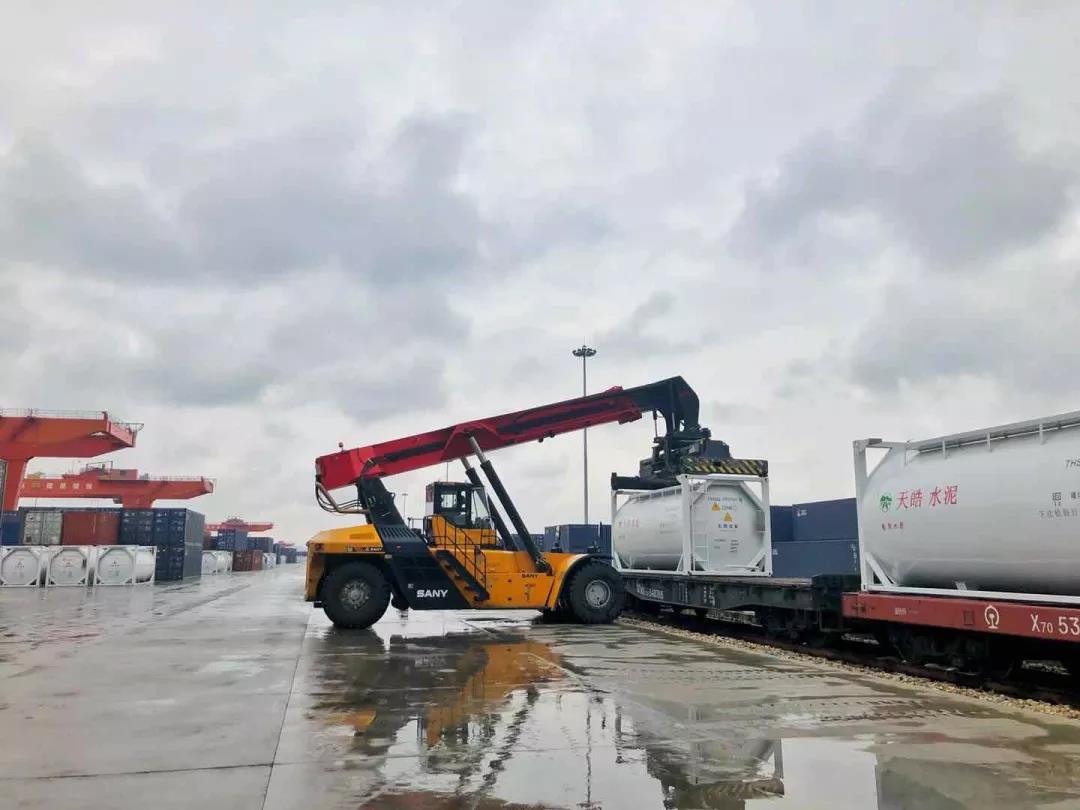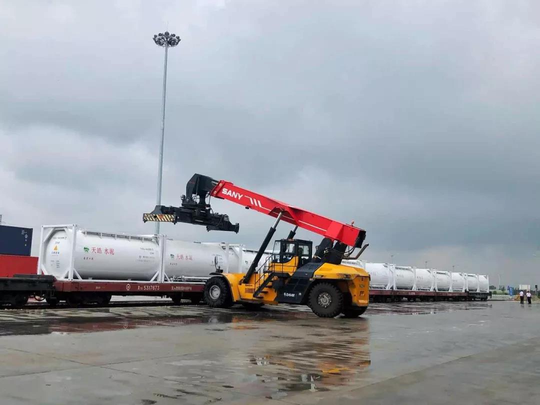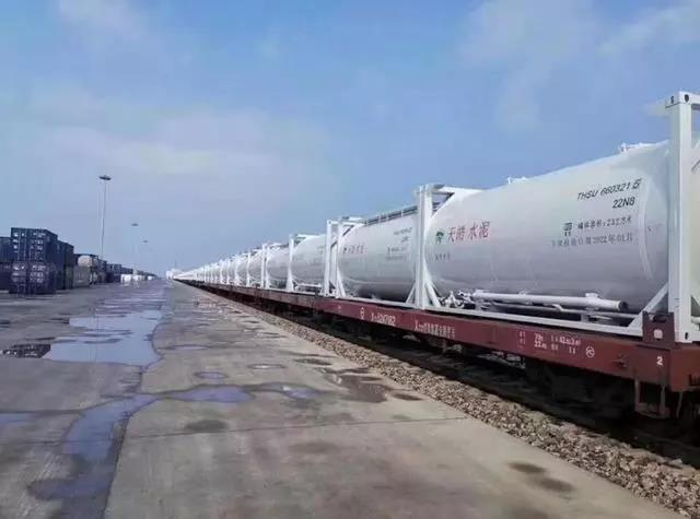 400個裝運散裝水泥的定制罐式集裝箱陸續到達廠區,未來每日將有100個罐式集裝箱發往北京、河南、河北等地