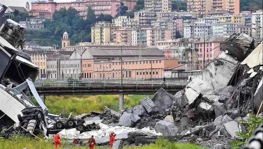 據報道,2018年8月14日,意大利熱那亞莫蘭迪公路橋突然垮塌,事故造成43人死亡,多人受傷。事件造成大橋周圍600多名居民被迫撤離,熱那亞和意大利西北部地區及其通往法國的交通網絡受到嚴重影響。
