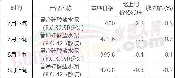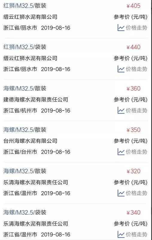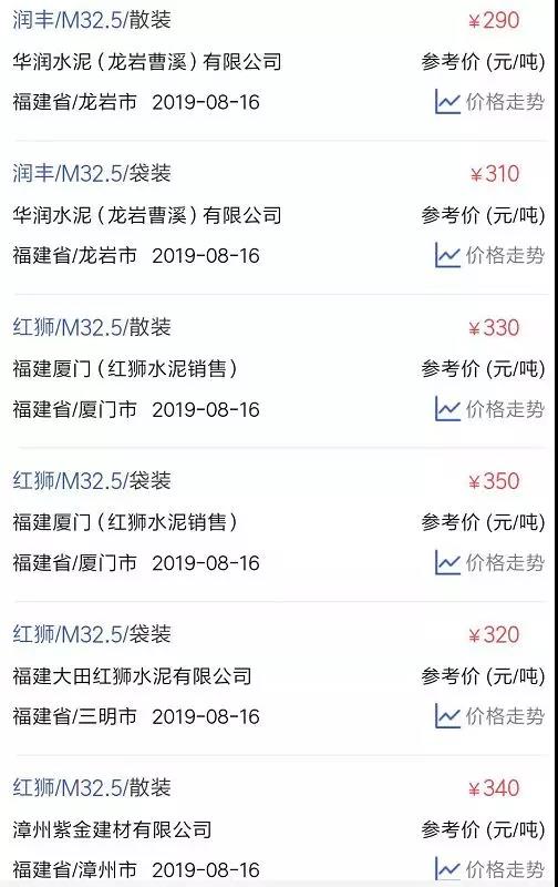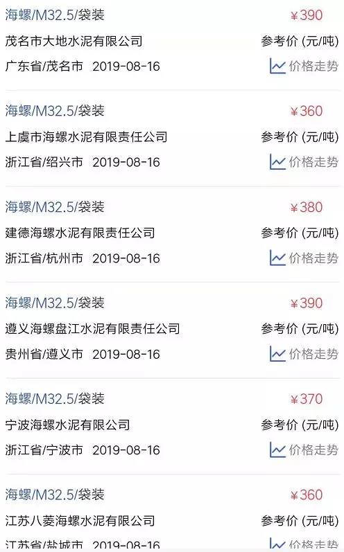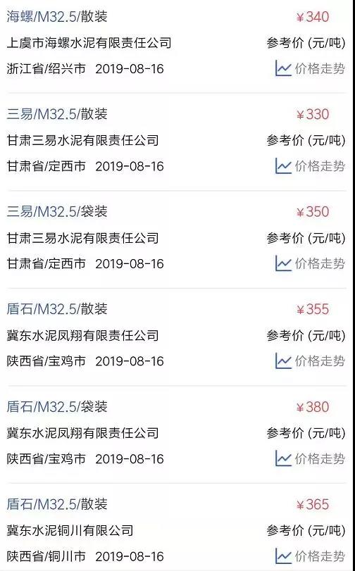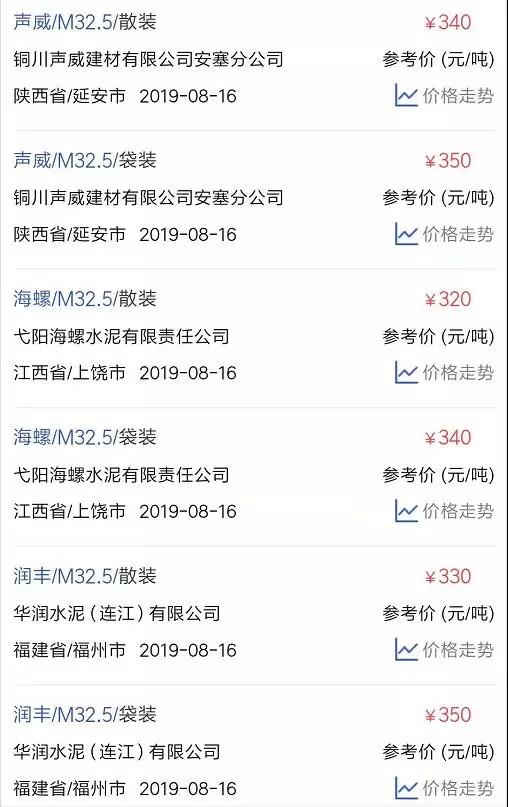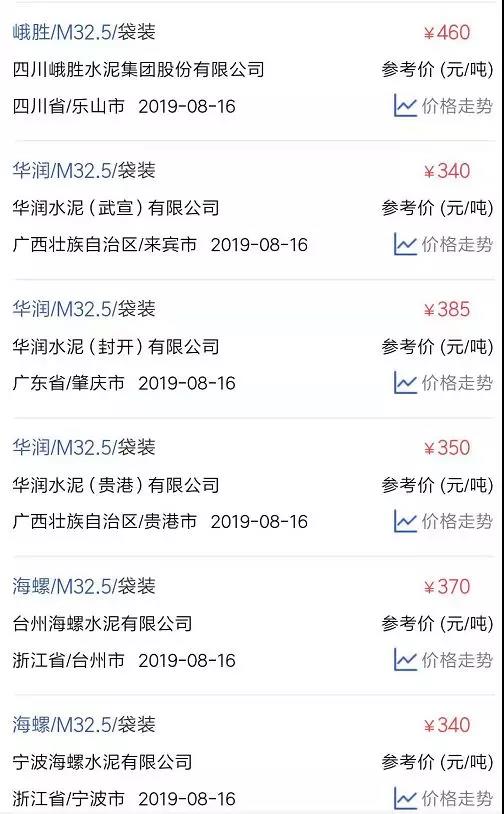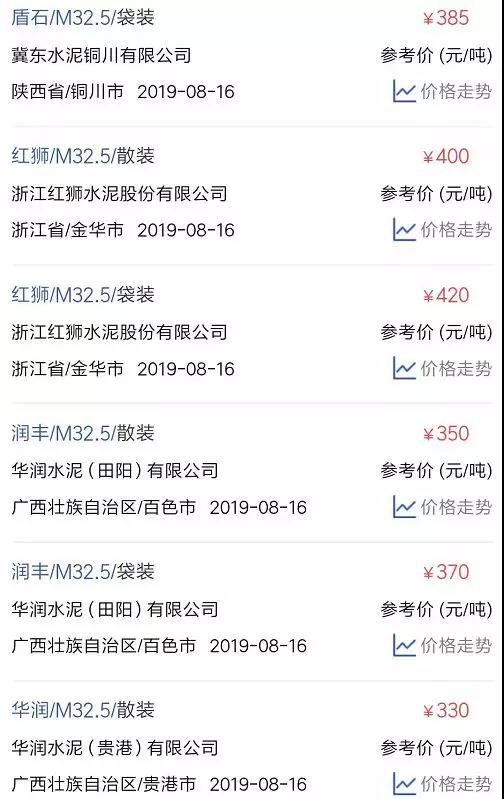 水泥人網信息中心PC32.5R水泥參考價(時間:2019年8月16日)