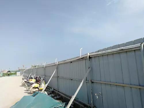 當天上午,執法人員首選來到鄭東新區金光路辦事處柳園口村的鄭東新區金光集體土地租賃房項目工地進行檢查,現場發現該場區北側圍擋約200米無防溢基座,工地內一臺非道路移動機械不合格。