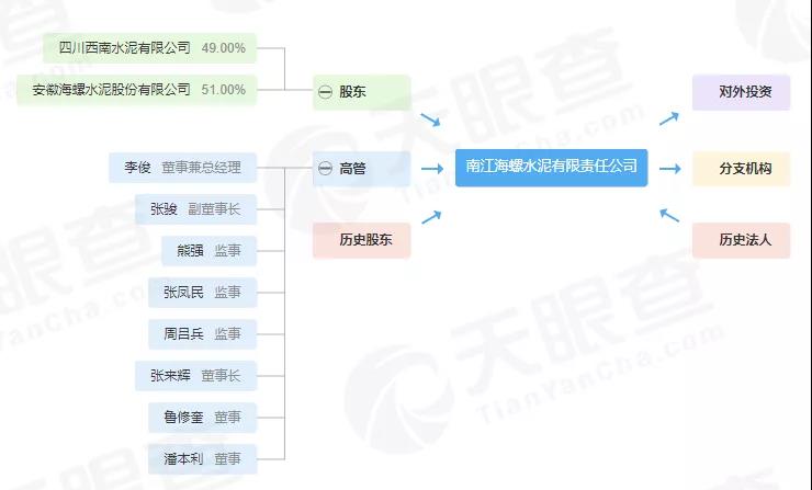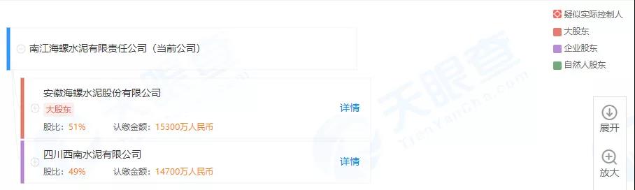 企業股東信息顯示,南江海螺水泥有限責任公司為海螺水泥與西南水泥的合資公司,兩者分別持股51%和49%。