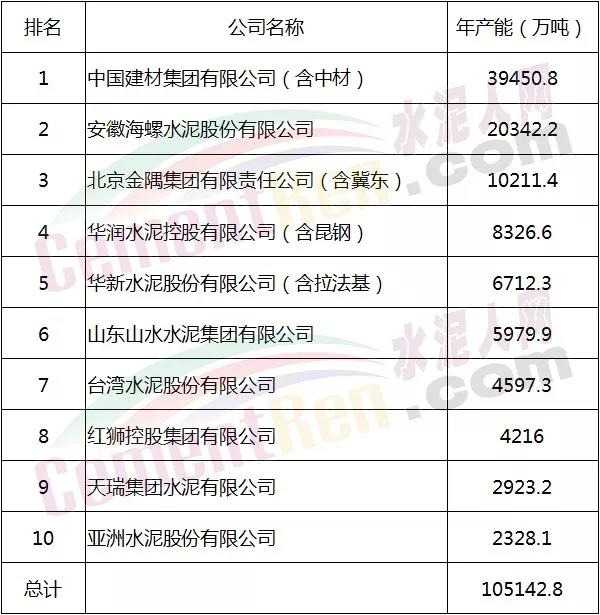 據(jù)水泥人網(wǎng)不完全統(tǒng)計(jì),2018年全國(guó)水泥熟料產(chǎn)能17.16億噸,其中,全國(guó)水泥熟料前十強(qiáng)的熟料總產(chǎn)能約為10.51億噸,占全國(guó)水泥熟料產(chǎn)能的61.27%。