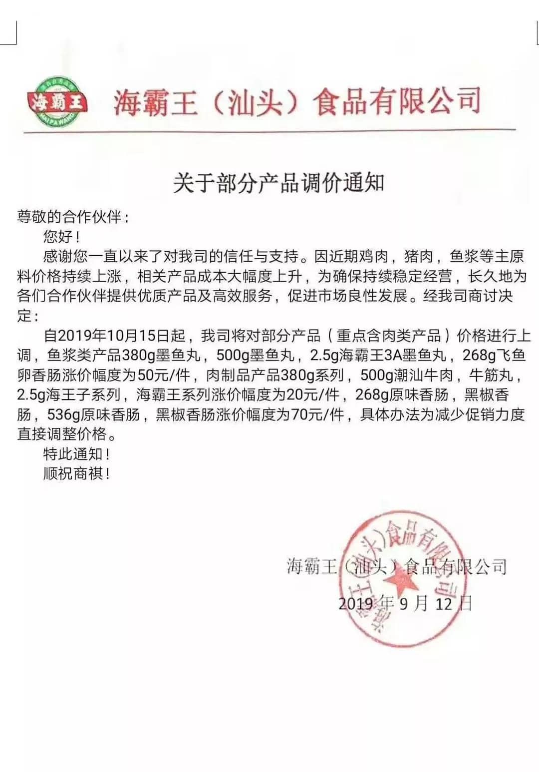 以下產品調價通知函,看看有沒有你熟悉的,博士學者覺得簡直將市面上的冷凍食品品牌一網打盡。