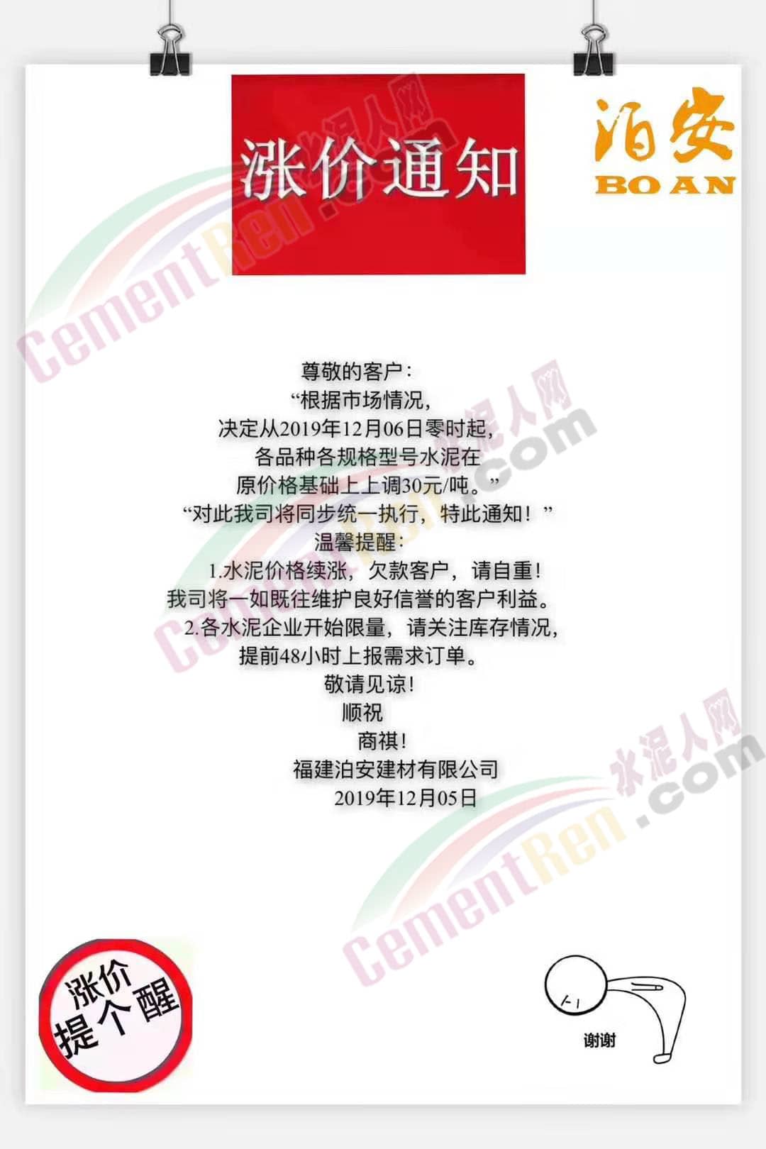 泊安水泥8月下旬至11月24日7連漲,累計漲價達到190元/噸。據了解更有甚者八月下旬至今8輪連漲,累計漲價達210元/噸。