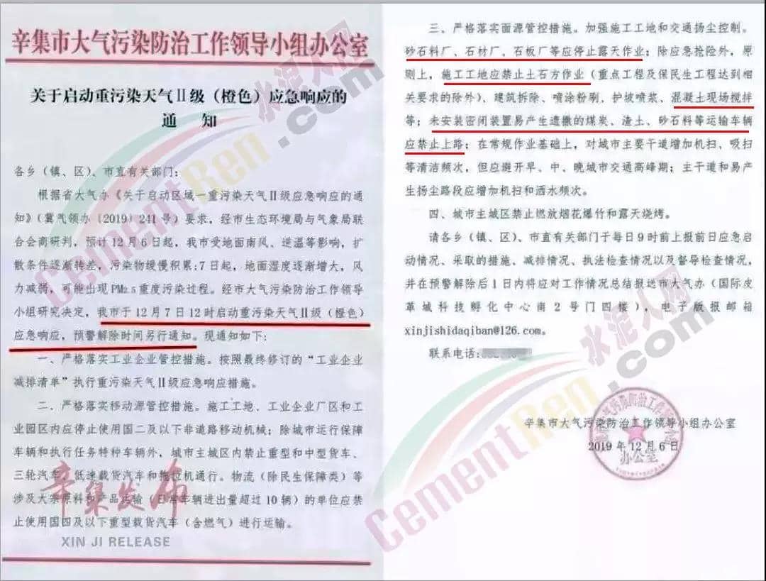 河北省辛集市大氣污染防治工作領(lǐng)導(dǎo)小組辦公室發(fā)布《關(guān)于啟動重污染天氣II應(yīng)急響應(yīng)的通知》稱,自12月7日12日啟動重污染天氣II級應(yīng)急響應(yīng),在應(yīng)急響應(yīng)期間,砂石料廠,石材廠,石板廠等停止露天作業(yè),除應(yīng)急搶險(xiǎn)外,原則上,施工工地應(yīng)禁止土石方作業(yè)。