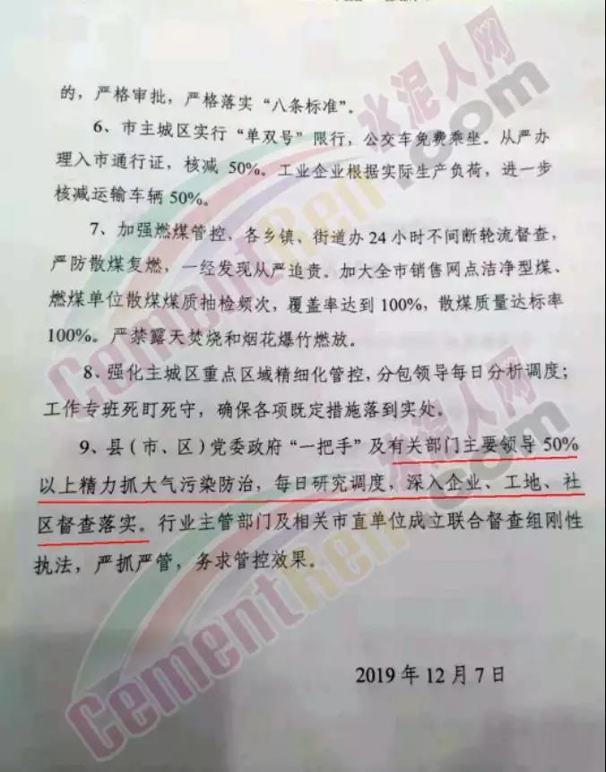 會議強(qiáng)調(diào),2019年大氣污染防治強(qiáng)化攻堅(jiān)沖刺期間,將圍繞工業(yè)企業(yè)監(jiān)管執(zhí)法、嚴(yán)控重型車、嚴(yán)查非道路移動機(jī)械等方面,全力做好重污染天氣管控。一是嚴(yán)查豁免項(xiàng)目,對已評為標(biāo)桿攪拌站的,或享受豁免政策的,發(fā)現(xiàn)存在違法違規(guī)行為,一律從嚴(yán)處罰,并根據(jù)情形責(zé)令降級或退出豁免名單。二是嚴(yán)查工業(yè)企業(yè),對全市7774家企業(yè)進(jìn)行逐家篩查,除今年納入紅色預(yù)警豁免的1438家重點(diǎn)企業(yè)外,對沒有完成深度治理或存在超標(biāo)排放行為的,嚴(yán)格實(shí)施停產(chǎn)整治。三是嚴(yán)控重型車輛。大宗貨物運(yùn)輸企業(yè)門禁系統(tǒng)按時(shí)全部安裝到位,聯(lián)網(wǎng)進(jìn)行監(jiān)管;應(yīng)急管控期間,禁止使用國Ⅳ及以下重型運(yùn)輸車輛;在重度污染時(shí),除民生保障外,停止大宗貨物運(yùn)輸。四是嚴(yán)查非道路移動機(jī)械。對全市在用非道路移動機(jī)械進(jìn)行拉網(wǎng)式排查,對使用未掛牌、不達(dá)標(biāo)非道路移動機(jī)械的,一經(jīng)發(fā)現(xiàn),嚴(yán)查重處。從目前各地發(fā)布的重污染天氣預(yù)警響應(yīng)以及相關(guān)政府部門的年底沖刺計(jì)劃來看,國內(nèi)的水泥、商混行業(yè)又將迎來新一輪停產(chǎn)潮,而且一潮高于一潮,在這種情況下,水泥、混凝土、砂石供應(yīng)趨緊,價(jià)格將會繼續(xù)狂舞。