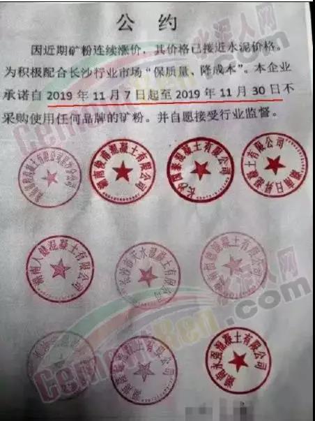 因礦粉漲價,湖南區域十家商砼企業訂立公約自因礦粉連續漲價,其價格已經接近水泥價格,為積極配合長沙行業 市場“保質量、降成本”。企業承諾一段時間內不采購使用任何品牌的礦粉,并自愿接受行業監督。