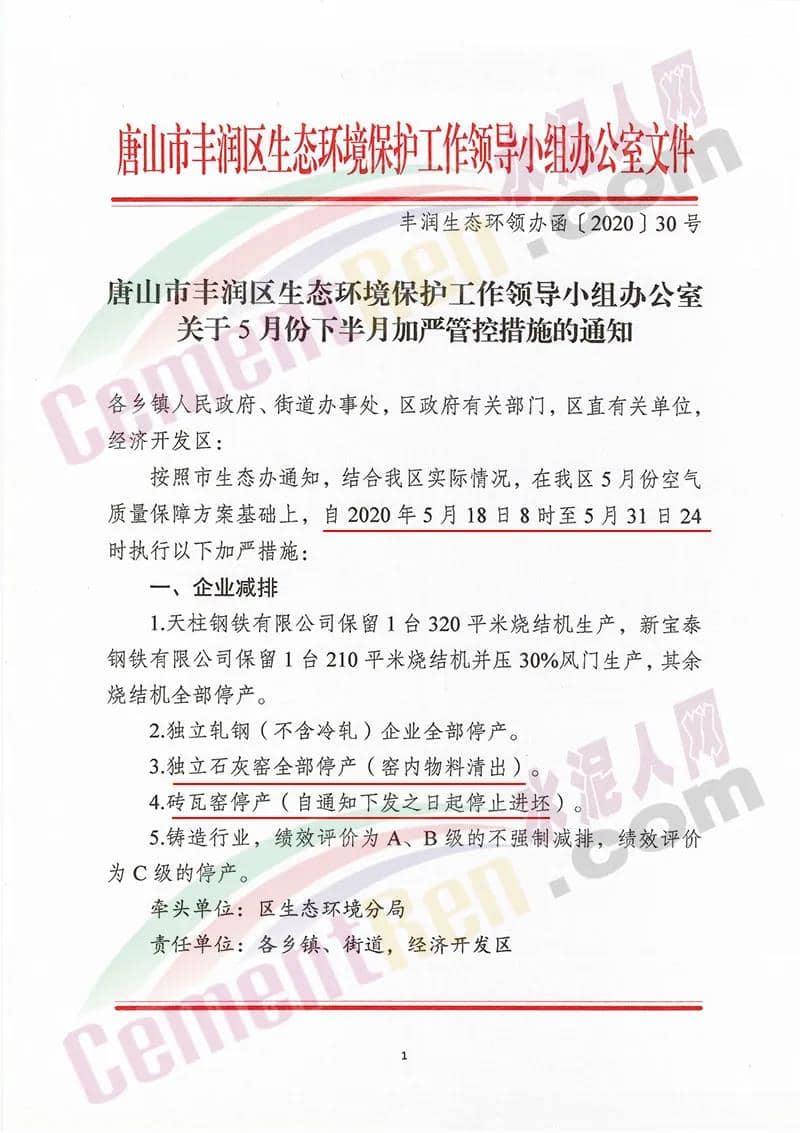 據水泥人網了解,應此前唐山市豐潤區生態環境保護工作領導小組辦公室文件要求每日20時至次日8時禁止運輸車輛進入廠區內,并未停發水泥。部分企業因庫容量較小,為保供重點客戶對部分經銷商客戶暫停供應。
