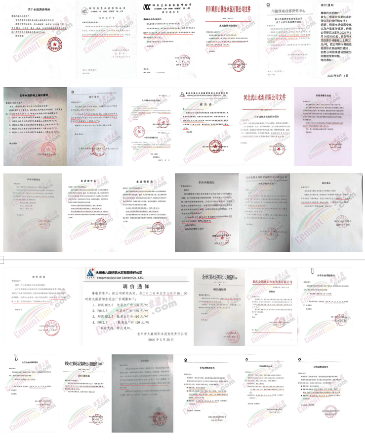 受市場需求逐步恢復以及周邊地區水泥價格上漲影響,5月10日前后,江油紅獅水泥、北川四星水泥、江油拉豪雙馬水泥有限公司、四川瀘州沱江水泥有限公司、長寧紅獅水泥有限公司等水泥企業宣布漲價,上漲20-30元/噸。