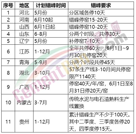 近期,河北、山東、河南、山西等區域通知開啟2020年夏季錯峰生產,同期,河北唐山豐潤區發布了《關于5月份下半月加嚴管控措施的通知》要求區域內水泥、混凝土攪拌站等企業即日起至5月31日執行加嚴措施。