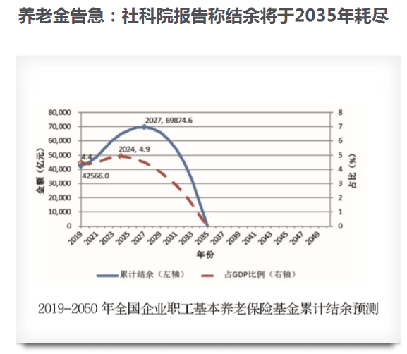 中國社科院世界社保研究中心發布《中國養老金精算報告2019~2050》(以下簡稱《報告》)。《報告》預測,未來30年我國的制度贍養率翻倍,2019年當期結余總額為1062.9億元,不過到2028年,當期結余可能會首次出現負數,為負1181.3億元。《報告》同時指出,城鎮職工基本養老保險基金累計結余到2027年有望達到峰值6.99萬億元,然后開始下降,到2035年有耗盡累計結余的可能性。