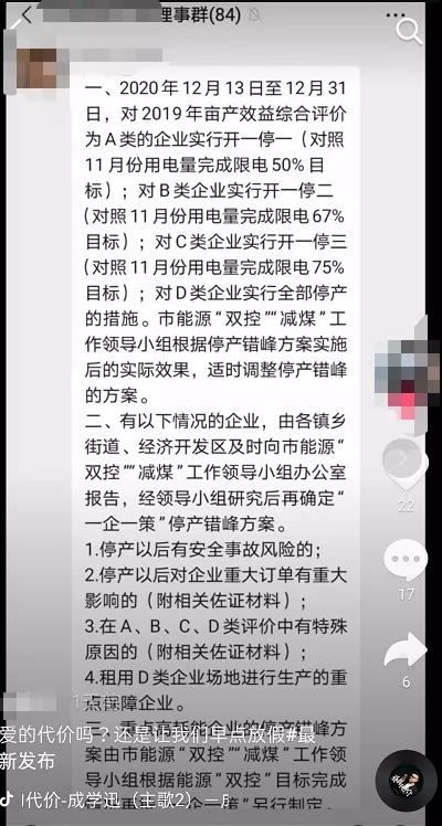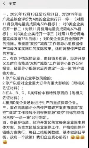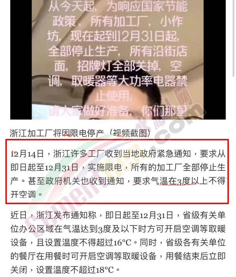 除以上地區外,湖南懷化、永州等地也已于12月5日起正式啟動有序用電。網絡上也有不少工廠“曬”出了現狀并表示,確實已經開始限電和停限產了。