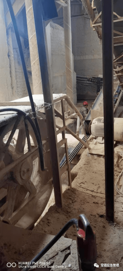 存在的隱患問題:1.主井提升鋼絲繩存在失油現(xiàn)象,繩接卡扣沒有按照一個(gè)方向敷設(shè);2.井下存在使用淘汰的農(nóng)用車輛(屬于淘汰設(shè)備);3.井下修理車間衛(wèi)生條件差,油類紙類及其他廢品亂放置,存在火災(zāi)等安全隱患;4.井下主要運(yùn)輸巷道道路安全擋不齊全;5.礦井進(jìn)風(fēng)流、回風(fēng)流經(jīng)過采空區(qū),井下采空區(qū)沒有密閉;6.井下斜坡道、主要運(yùn)輸巷行人及車輛運(yùn)輸安全警示標(biāo)志不全;7.井下掘進(jìn)工作面存在無風(fēng)作業(yè)現(xiàn)象,局扇未開啟,風(fēng)筒未到工作面;8.工作面附近無電話;9.礦井壓風(fēng)自救和供水施救系統(tǒng)主管路銹蝕,系統(tǒng)癱瘓;10.工作面作業(yè)人員高處作業(yè)時(shí)未系安全帶;11.廠區(qū)未設(shè)置安全警示標(biāo)志;12.配電房未設(shè)置防鼠網(wǎng)。