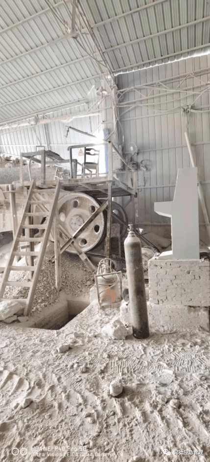 存在的隱患問題:1.地面破碎系統(tǒng)設(shè)備設(shè)施無防護(hù)罩;2.井下鏟裝機(jī)械沒有配備滅火器;3.井下爆破作業(yè)采用固定母線放炮;4.井下局扇放置在井巷底板上,沒有安裝局扇托架;5.井下施救供水管使用膠質(zhì)水管;6.井下東1工作面、西1工作面、西2工作面壓風(fēng)自救和供水施救系統(tǒng)未到工作面;7.負(fù)100運(yùn)輸巷頂板存在松石,沒有及時(shí)清頂;8.氧氣瓶與液化氣瓶混放在倉(cāng)庫(kù)中;9.廠區(qū)未設(shè)置安全警示標(biāo)志;10.現(xiàn)場(chǎng)電焊工未見到操作證書。
