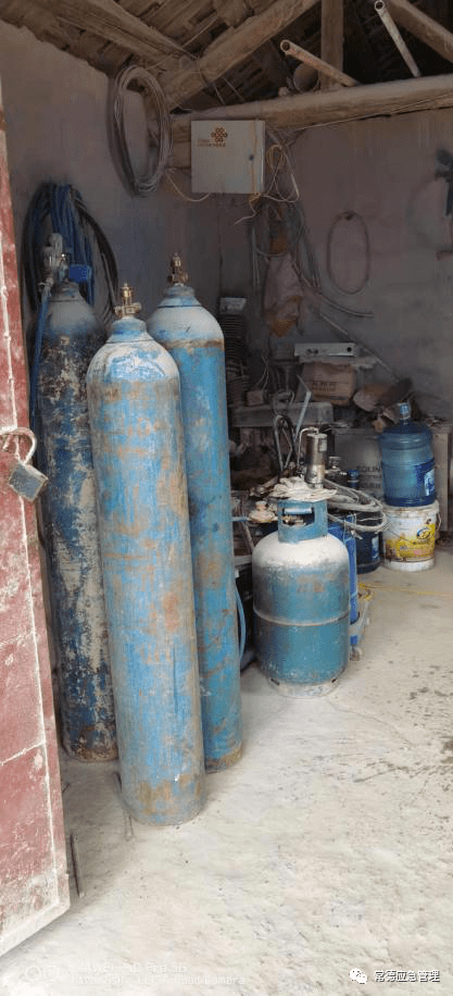 地面機(jī)電儲(chǔ)存室氧氣瓶和液化氣瓶混放