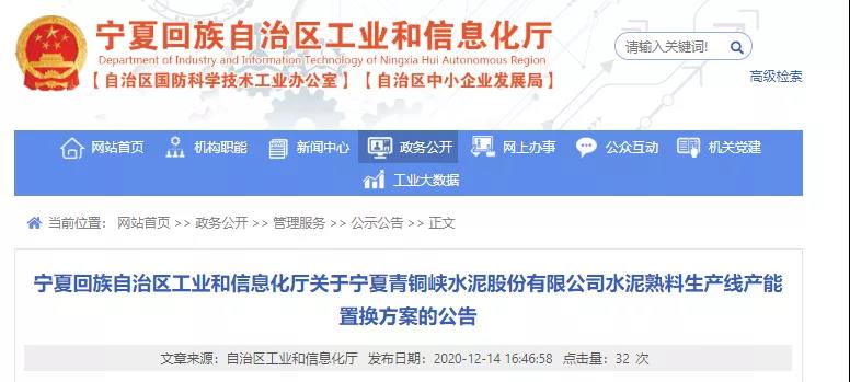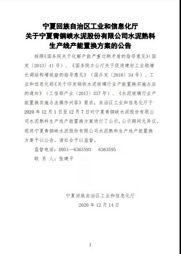 寧夏青銅峽水泥股份有限公司水泥熟料生產線產能置換方案