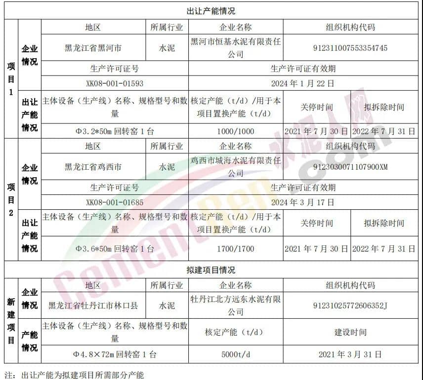 黑龍江省 黑河市恒基水泥有限責任公司雞西市城海水泥有限責任公司水泥熟料產能出讓公示黑龍江省工信廳發布《關于黑河市恒基水泥有限責任公司雞西市城海水泥有限責任公司水泥熟料產能出讓公示》,公示文件顯示,黑河市恒基水泥有限責任公司擬出讓水泥熟料產能1000t/d水泥熟料產能、雞西市城海水泥有限責任公司擬出讓水泥熟料產能1700t/d,用于牡丹江北方遠東水泥有限公司將新建一條5000t/d水泥熟料生產線。退出產能擬除拆時間為2022年7月底,新建項目建設時間為2021年3月31日。