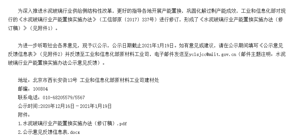 第二十二條 各省級工業(yè)和信息化主管部門可以根據(jù)本辦法,結(jié)合本地實際情況進一步明確細(xì)化程序和嚴(yán)格有關(guān)要求。第二十三條 本辦法自 2021 年 x 月 x 日起施行。原《水泥玻璃行業(yè)產(chǎn)能置換實施辦法》(工信部原〔2017〕337 號)同時廢止。