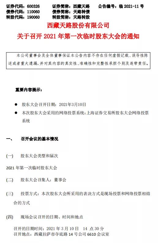 來自于上市公司的消息稱,22日晚間,西藏天路(600326)連發(fā)《第五屆監(jiān)事會第三十四次決議公告》、《關于選舉職工監(jiān)事的公告》、《西藏天路股份有限公司2021年第一次臨時股東大會通知》等三條公告。