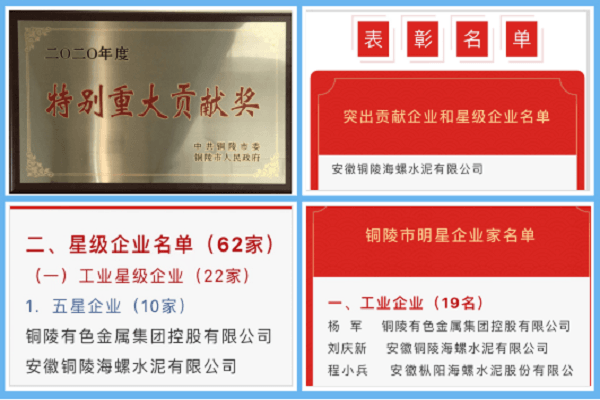 “十三五”期間,公司實現利潤83.52億元,較“十二五”翻了一番;勞動生產率提高了30%,員工收入翻了一番。榮獲“國家級綠色工廠”“全國文明單位”“安徽省環保誠信企業”等多項殊榮,窯運行、熟料和水泥產銷量不斷刷新歷史紀錄,生產運行穩定受控。