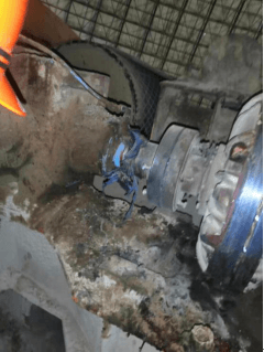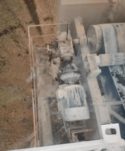 2020年12月31日,王求生于8時按規定簽到后到均化庫堆取料機崗位工作。15時左右,機械巡檢工吳道榮在B線均化庫門口遇見王求生。22時48分左右,王求生女兒致電原料分廠負責人胡延樹,詢問父親16時下班后是否加班,胡延樹隨即查看簽到表后發現王求生有上班簽到,無下班簽字記錄。胡延樹通過對講機向周六彬核查交接班情況,周六彬反饋未與其當面交接班,胡延樹又電話詢問王求生同班作業的丁裕華,丁裕華表示未看到王求生。因現場無監控視頻,于是胡延樹趕到王求生工作崗位和周六彬進行排查尋找,23時05分左右,在對A線堆取料機上部的堆料機部分進行查找時,在堆料機電磁離合器傳動軸處發現王求生,其頭部朝西,腳朝東,面向上,右臂環抱傳動軸,身體緊挨傳動軸側臥,傳動軸正在運轉。(如圖二、圖三)