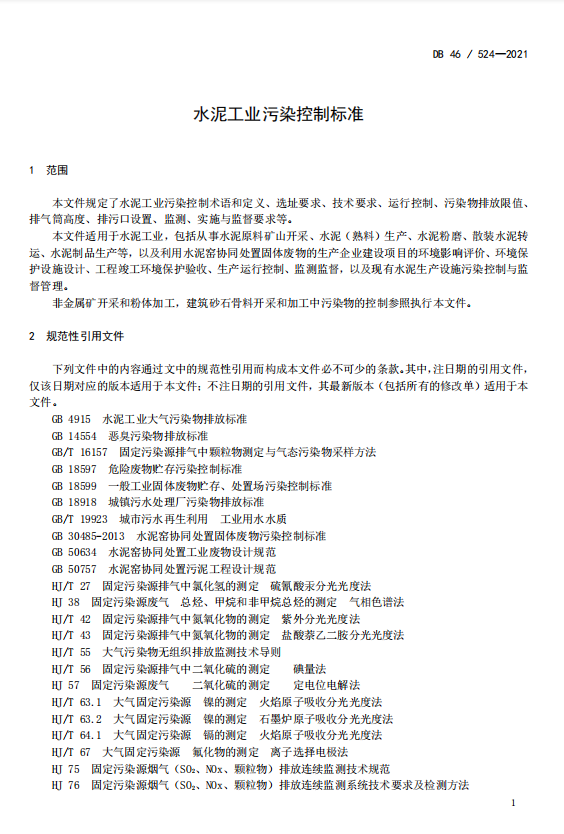 2月27日,記者從海南省生態(tài)環(huán)境廳獲悉,海南省地方標(biāo)準(zhǔn)《水泥工業(yè)污染控制標(biāo)準(zhǔn)》(以下簡(jiǎn)稱《標(biāo)準(zhǔn)》)3月1日起正式實(shí)施。