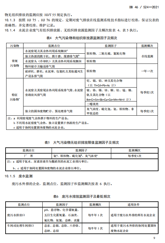 《標(biāo)準(zhǔn)》規(guī)定了省內(nèi)水泥工業(yè)污染控制術(shù)語和定義、選址要求、技術(shù)要求、運(yùn)行控制、污染物排放限值、排氣筒高度、排污口設(shè)置、監(jiān)測(cè)、實(shí)施與監(jiān)督要求等。在污染排放控制方面,《標(biāo)準(zhǔn)》根據(jù)各種不同污染源排放的特點(diǎn)設(shè)置了不同的限值要求和監(jiān)測(cè)要求,對(duì)于有組織源設(shè)定污染物排放小時(shí)濃度限值;對(duì)于礦區(qū)、廠區(qū)的無組織源,提出廠界濃度限值要求;對(duì)水泥(熟料)生產(chǎn)企業(yè)大氣主要排放口實(shí)施在線監(jiān)測(cè)的同時(shí),要求對(duì)廠界氨、顆粒物濃度實(shí)施在線監(jiān)測(cè)。