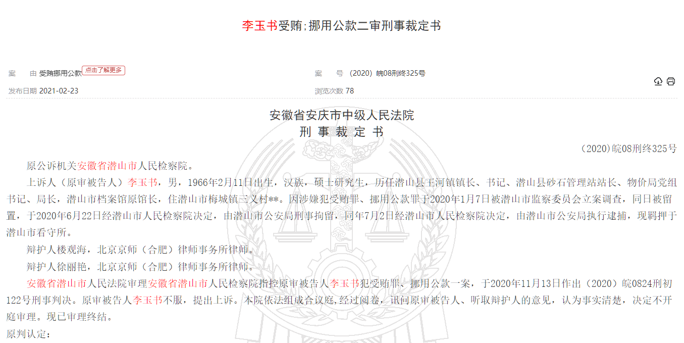 2021年2月23日,中國裁判文書網公布了該案二審刑事判決書。