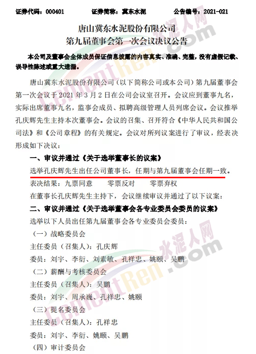 重磅!唐山冀東水泥上市公司連發(fā)五條公告高層大調整