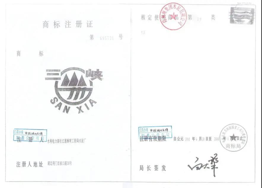 新版“三峽牌”商標(biāo)及商標(biāo)注冊(cè)證書