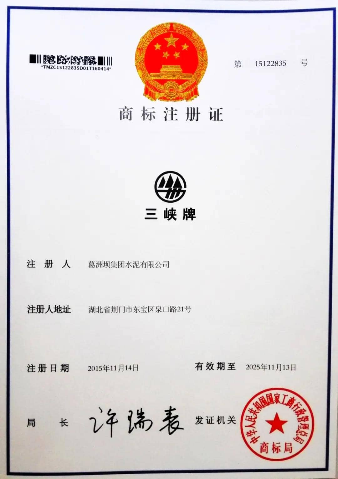 葛洲壩水泥廠從1975年正式投產(chǎn)直至1983年,水泥產(chǎn)品一直沒有正式的商標(biāo)。1980年3月初,湖北省建材局召集部分企業(yè)代表商討80年代湖北建材產(chǎn)品創(chuàng)優(yōu)奪牌工作。為落實(shí)會(huì)議精神,葛洲壩水泥廠呈文葛洲壩工程局,提出以600號(hào)硅酸鹽大壩水泥作為質(zhì)量創(chuàng)優(yōu)產(chǎn)品,正式擬出“三峽牌”“高峽牌”“江峽牌”等品牌名稱,請(qǐng)工程局確定,同月17日,工程局批復(fù)明確產(chǎn)品為“三峽牌”。1984年3月,經(jīng)國(guó)家工商行政管理局批準(zhǔn)注冊(cè)。