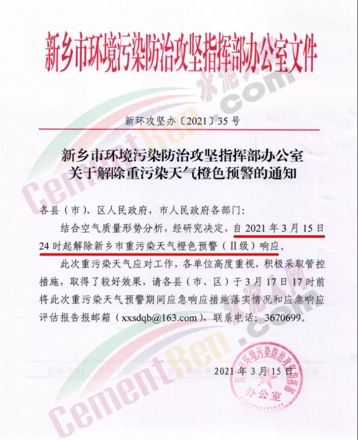 同日,新鄉(xiāng)市環(huán)境污染防治攻堅(jiān)指揮部辦公室發(fā)布《關(guān)于解除重污染天氣橙色預(yù)警的通知》稱,自 2021年3月15日24時(shí)起解除新鄉(xiāng)市重污染天氣橙色預(yù)警(Ⅱ級(jí))響應(yīng)。