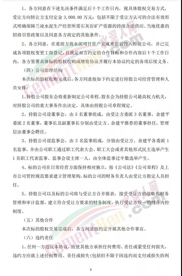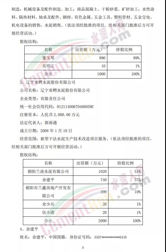 各方確認,待余建平及重組方將合作資產完成重組后,持股公司將持有蘭凌水泥100%股權,并通過蘭凌水泥持有蘭澤建材100%股權和亞鱷水泥90%股權。即,重組方歸屬于持股公司的總資產估值為10.75億。各方確認,重組方本次擬納入合作的水泥項目資產范圍包括但不限于: