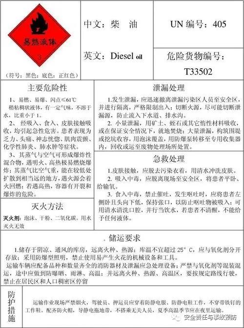 3.柴油是危險化學品嗎?原國家安監總局等10部門公告2015年第5號《危險化學品目錄(2015)》規定柴油為危險化學品(批次柴油的閉杯內閃點均大于60℃的除外),所以,閉杯閃點是判定一批柴油是否是危險化學品的重要指標準。
