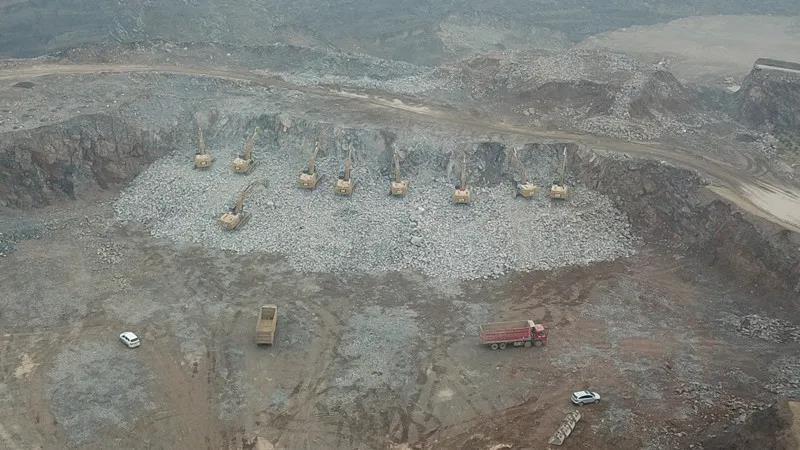2019年七月被中國(guó)網(wǎng)報(bào)道禹州萇莊鄉(xiāng)磊磊石礦處于生產(chǎn)狀態(tài),十余輛鉤機(jī)正在山上開采,十幾輛卡車忙著裝載運(yùn)輸,車輛并未覆蓋篷布,所經(jīng)之處揚(yáng)塵隨風(fēng)而起,周圍無(wú)噴淋灑水等抑塵措施,礦渣隨意在地表堆放。