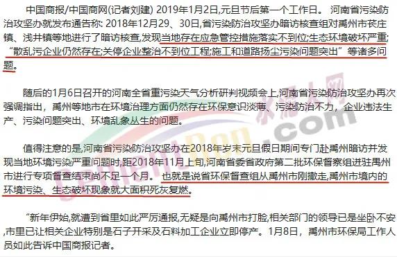 2019年磊磊礦區(qū)違反重污染天氣預(yù)警管控要求,違法開采、違法生產(chǎn)。整改情況:(1)許昌市生態(tài)環(huán)境局禹州分局對(duì)該企業(yè)涉嫌違規(guī)生產(chǎn)設(shè)施設(shè)備立即進(jìn)行查封扣押,對(duì)該企業(yè)涉嫌違法行為進(jìn)行立案調(diào)查。(2)由屬地政府和生態(tài)環(huán)境部門對(duì)該企業(yè)進(jìn)行不間斷輪流監(jiān)管,確保管控期間該企業(yè)停產(chǎn)、停售到位。(3)禹州市對(duì)照重污染天氣不同級(jí)別管控要求,對(duì)禹州市企業(yè)進(jìn)行梳理,結(jié)合生產(chǎn)工藝制定“一廠一策”,同時(shí)加強(qiáng)宣傳引導(dǎo),強(qiáng)加企業(yè)監(jiān)管。同時(shí)禹州市萇莊鎮(zhèn)黨委副書記王鴻鈞被約談;萇莊鎮(zhèn)原黨委書記崔勞資作出深刻檢查。