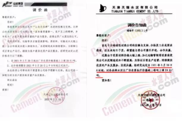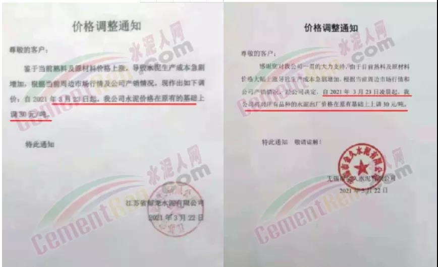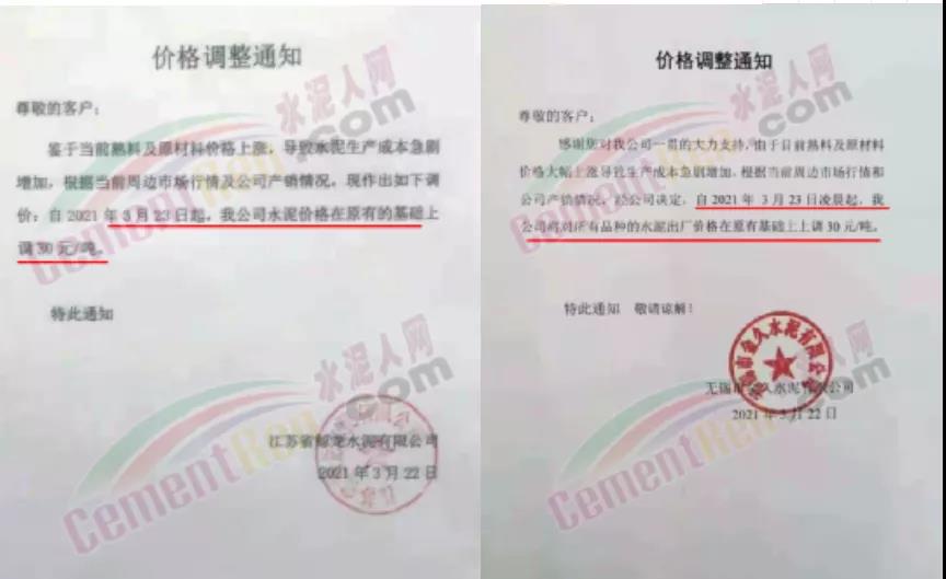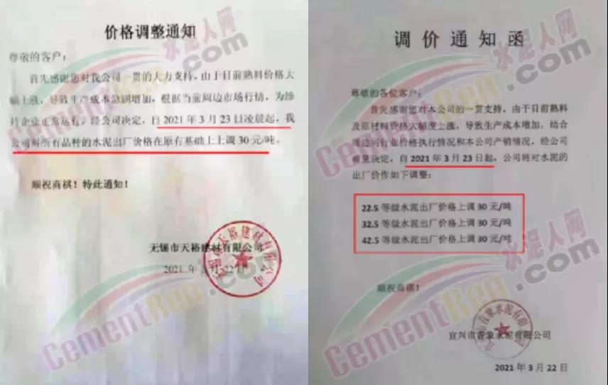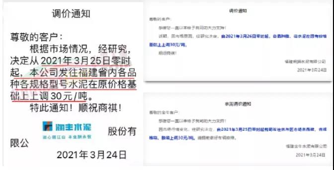 依據(jù)周邊市場價格,結(jié)合我公司實(shí)際情況,決定自2021年3月31日上午8:00開始,我公司2號線、3號線熟料價格上調(diào)20元/噸。