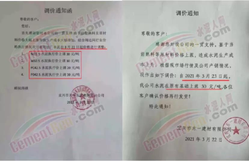 根據(jù)當(dāng)前市場行情,我公司于2021年3月26日8:00時,對M32.5級袋裝水泥上調(diào)20元/噸,對PO42.5級袋裝水泥價格上調(diào)30元/噸,特此通知!