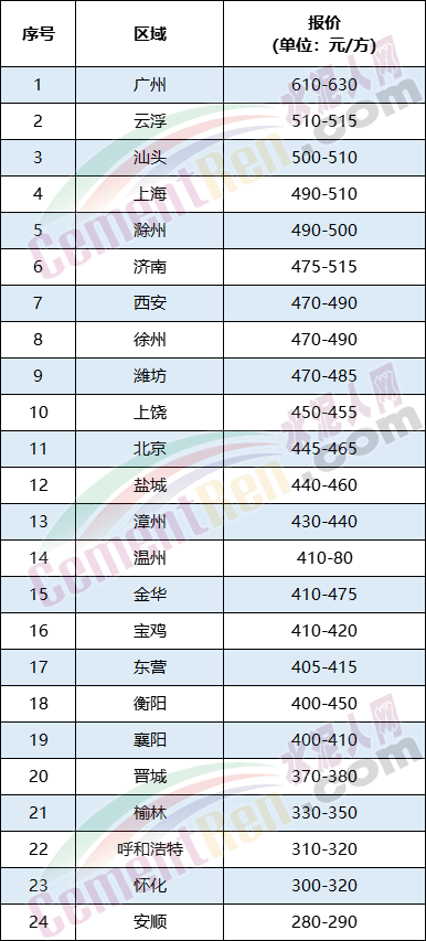 數據來源:水泥人網信息中心人工采集,僅供參考,如與實際成交價格不符,請以實際成交價格為準。