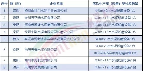 河南省9座直徑3米及以下水泥粉磨站等已于上年末全部停產(chǎn)、關(guān)停和淘汰。