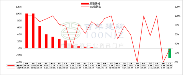 東北地區熟料產能利用率較上周下降18.52%,遼寧部分水泥企業執行停窯計劃,產能利用率有所下降;其他區域變動較小。