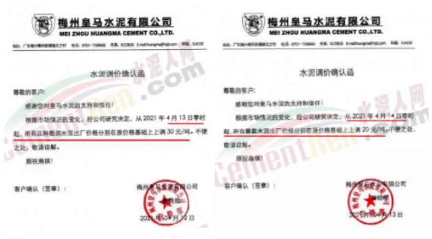 梅州皇馬水泥有限公司、蕉嶺縣龍騰旋窯水泥有限公司分別于13日、14日分別上調袋裝水和散裝水泥價格,其中袋裝水泥上調20元/噸,散裝水泥上調30元/噸。