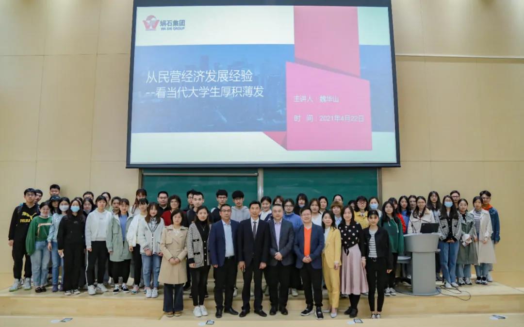 楊武副書記對講座進行了點評。楊武副書記認(rèn)為魏董事長的講座是一堂生動的思政課與職業(yè)規(guī)劃課。媧石集團的發(fā)展歷程是波瀾壯闊的黨史、改革開放史的一個縮影,正是因為有媧石集團這樣能夠順應(yīng)時代潮流,不屈不撓、銳意改革、不懈奮斗的企業(yè),我們的國家才能取得今天舉世矚目的成就,正是有這樣的企業(yè),我們更加堅定了對中國特色社會主義道路的認(rèn)同。楊武副書記指出,魏董事長所展現(xiàn)的敢于擔(dān)當(dāng)、銳意進取、艱苦奮斗的中國企業(yè)家精神與強烈的家國情懷和社會責(zé)任感值得我們學(xué)習(xí)。楊武副書記勉勵同學(xué)們,要向魏董事長學(xué)習(xí),堅定理想信念,練就過硬本領(lǐng),昂揚奮斗精神,力求知行合一,將自身發(fā)展的“小我”融入黨和國家發(fā)展的“大我”中,為建設(shè)社會主義現(xiàn)代化強國、為中華民族偉大復(fù)興貢獻(xiàn)自己的力量。