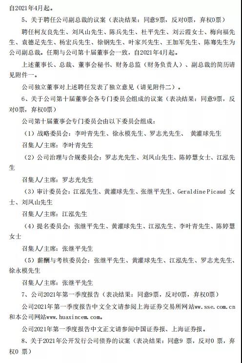 聘任柯友良先生、劉鳳山先生、陳兵先生、杜平先生、劉云霞女士、梅向福先生、袁德足先生、楊宏兵先生、徐鋼先生、葉家興先生、王加軍先生、陳騫先生為公司副總裁。