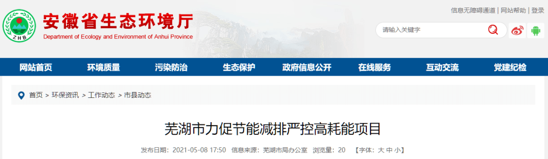 日前,水泥人網自安徽省生態(tài)環(huán)境廳獲悉,近日,蕪湖市2019至2020年新增10個高耗能項目均通過省發(fā)改委合理用能評估。