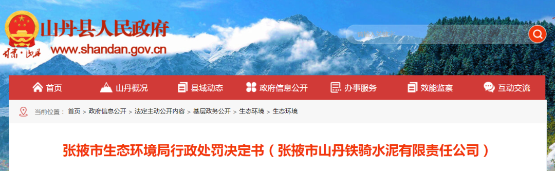 日前 ,甘肅省張掖市山丹縣人民政府官網發布一則行政處罰決定書稱,張掖市山丹鐵騎水泥有限責任公司因原料堆場堆存的煤矸石、熟料未采取有效覆蓋措施防治揚塵污染。違反了《中華人民共和國大氣污染防治法》第七十二條第一款 “貯存煤炭、煤矸石、煤渣、煤灰、水泥、石灰、石膏、砂土等易產生揚塵的物料應當密閉;不能密閉的,應當設置不低于堆放物高度的嚴密圍擋,并采取有效覆蓋措施防治揚塵污染。碼頭、礦山、填埋場和消納場應當實施分區作業,并采取有效措施防治揚塵污染。”的規定。